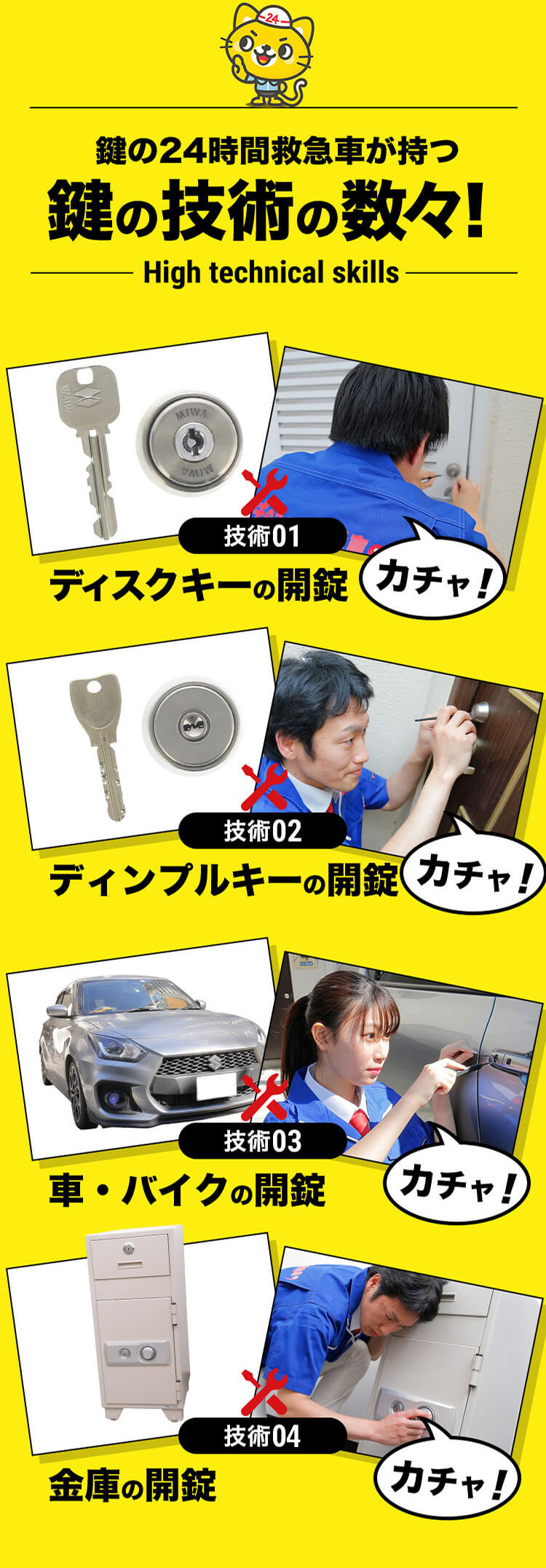 京都の「カギの出張24時間」は、古都の風情を感じる場所での鍵の緊急対応にも迅速に対応します。観光客も安心の多言語サポートを提供し、作業前の丁寧な説明でお客様の不安を解消。京都で鍵の問題があれば、当店にお任せください。